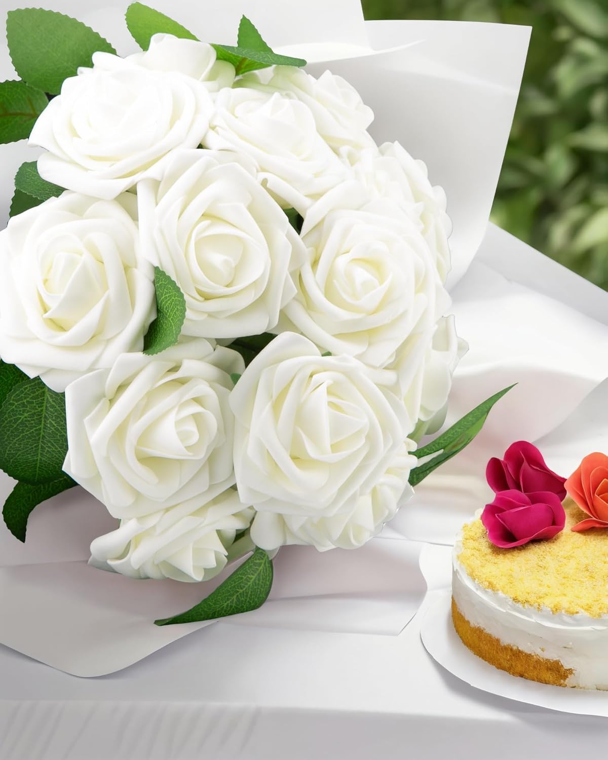 • Premium Material: The roses are made of soft quality PE foam, look like real fresh roses, and touch very soft. No smelly, No color fading, no flowers drop off, and vibrant uniform colors, easy to store for longer time than real roses. (Color ivory white, slightly color difference between different dye lots)