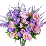 - Artificial Flower Arrangement Decorations - Elegant pink rose purple peony and fake lavender with stems completely imitates the real plants with bright cozy atmosphere for any occasion that instantly brighten your room when in holiday season days.